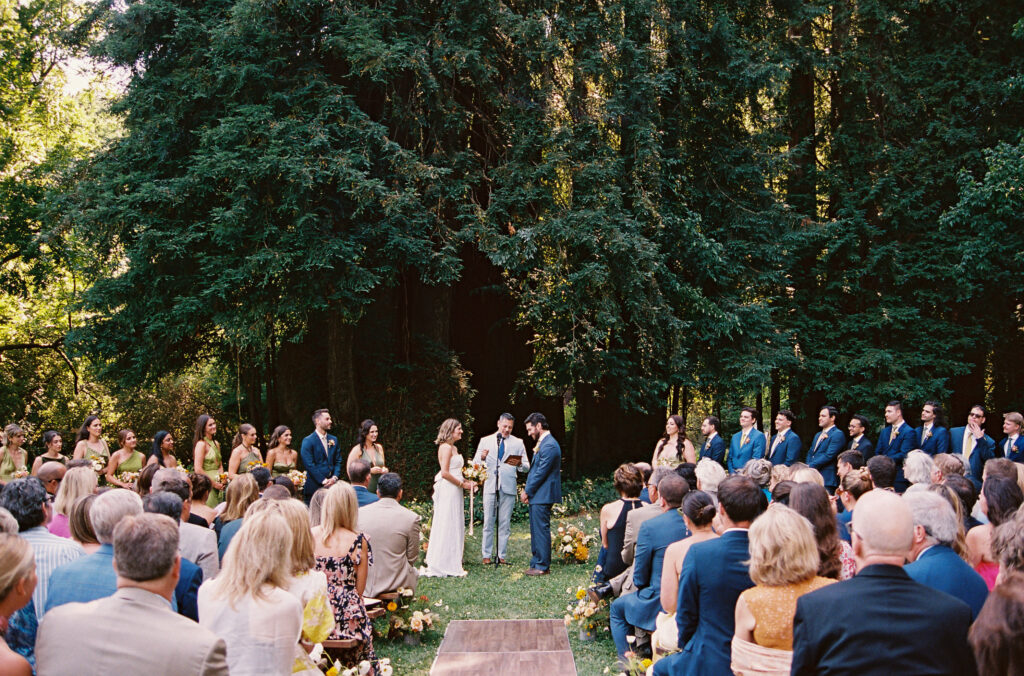 Nestled in the redwoods along the Russian River, Dawn Ranch gave Sara and Jesse exactly what they wanted: natural beauty, nostalgic camp vibes, and a place that felt both elevated and totally unpretentious. With the Bay Area as their shared home base before a recent move to New York, it only made sense to return to a place that held meaning and plenty of magic, for their wedding weekend.